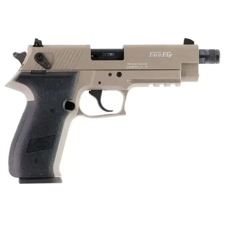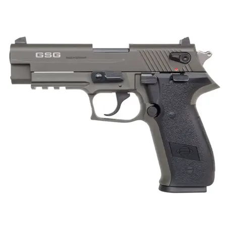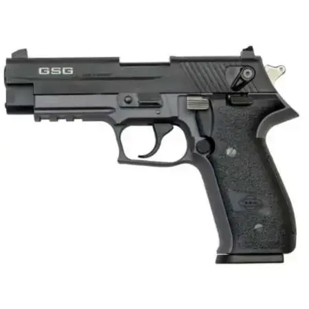 The GSG FireFly features a wear-resistant alloy frame outfitted with an integrated accessory rail. The slide features adjustable sights, along with the rugged blowback system, fixed barrel and superior ergonomic grip.