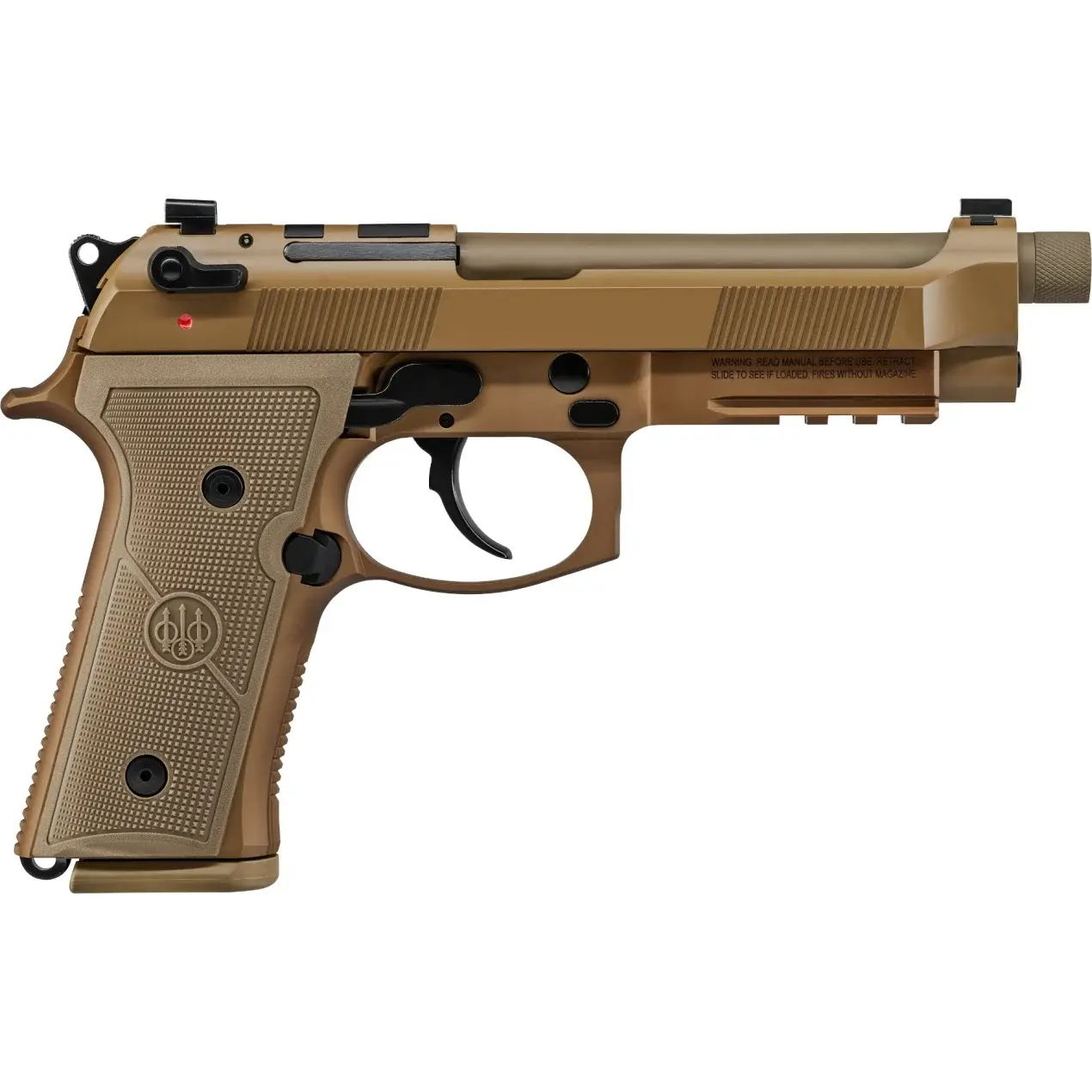 The Beretta M9A4 features the proven design of the M9 series with new modern features that include a red-dot optic compatible slide, a beveled magazin e well, and texturized Vertec-style thin grips for instinctive control.