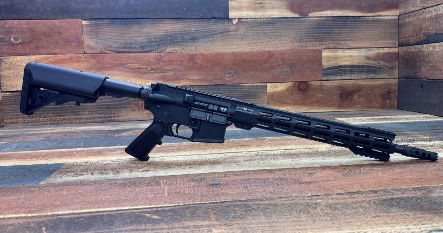 This rifle is a Blitzkrieg Tactical Diomedes rifle that was made exclusively for Firearms Unknown.