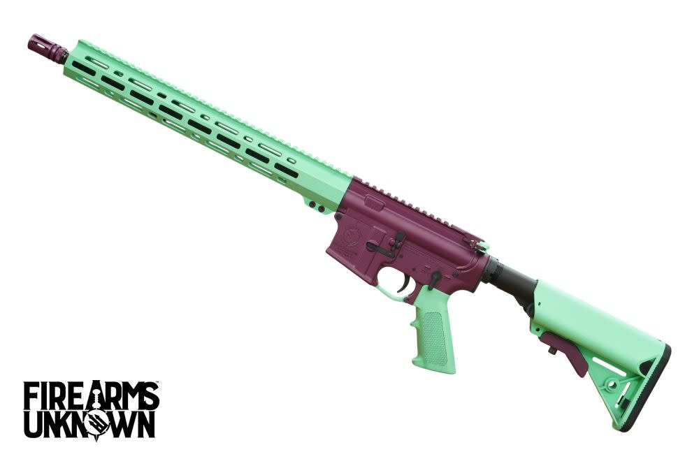 This gun was coated with Island Green (H-353) and Black Cherry (H-319) Cerakote.