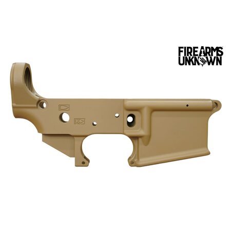 We now have our own lower receiver by Firearms Unknown! This is a Mil-Spec lower receiver that is Cerakoted Magpul FDE and will fit any Mil-Spec upper receiver you want to pair with it.