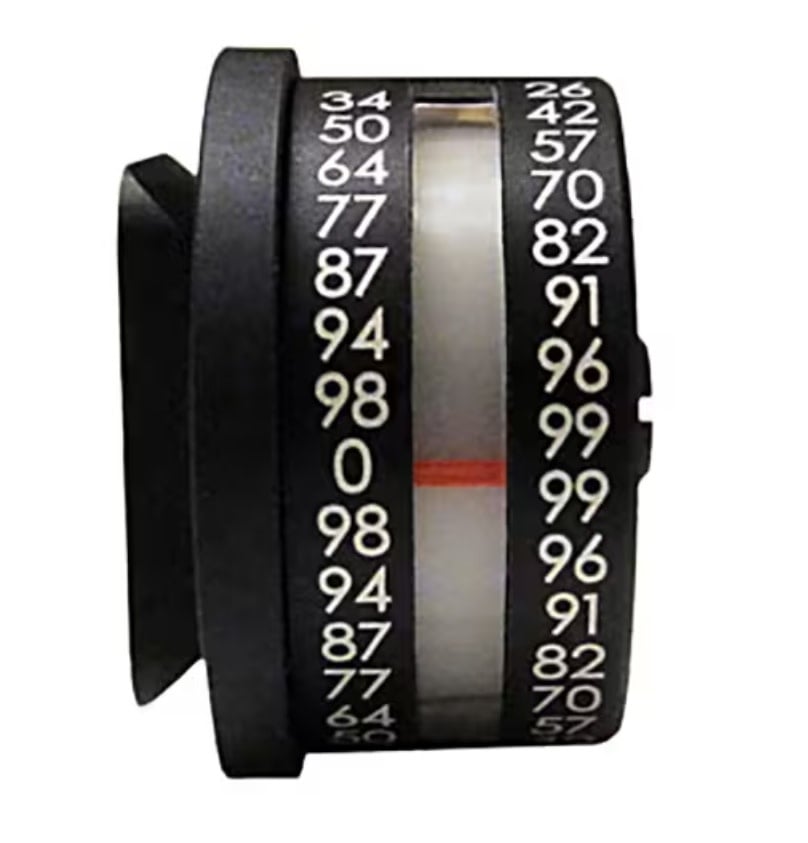 Take the guesswork out of mountainous distances with this ACI which helps you calculate the distance to your target and is corrected for gravity. This Sniper Tools Design Company mil spec angle cosine indicator is vault solid, waterproof, and made from aircraft grade aluminum with an anodized flat black finish. The numbers are laser engraved in 5 degree increments. The lens is shatter proof and shockproof. No batteries are required.