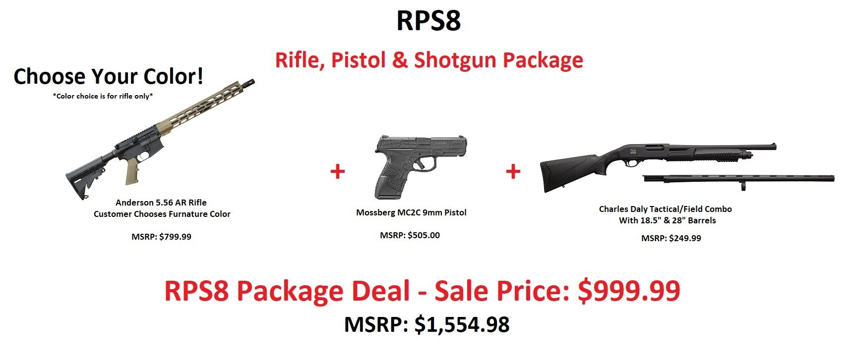 This kit is different from previous kits because Firearms Unknown is offering free cerakote on the AR rifle. The pistol is different and a more expensive pistol than the pistol previously included in the kits (the SW SD9) and the shotgun is a combo which gives the customer a 18.5" tactical barrel and a 28" field barrel (for bird hunting or trap/skeet shooting).