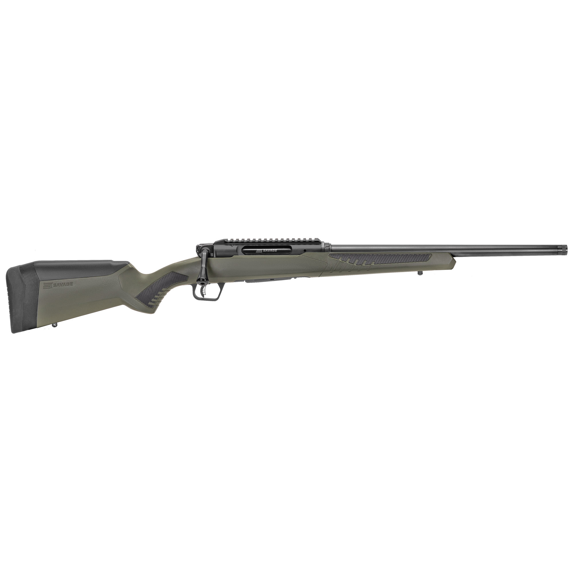 Feral hogs are damaging and dangerous, and sometimes good eating. So, when it is time to clear your land and thin the herd, the Savage Impulse Hog Hunter is the rifle you need. With a unique straight pull action, there is no rotating a bolt, you can shoot hogs as fast as you can pull the trigger, move your hand back and then forward, and line up the sights. Shoot, pull, push, fire, repeat! It is that fast. Chambered in .30-06, the Hog Hunter can down the largest pigs on your land. The carbon steel medium contour barrel is threaded for 5/8"-24 TPI muzzle devices or a suppressor. An integrated 20 MOA Picatinny rail is machined into the receiver for a rock-solid base for your scope or optic. For comfort and control, the Hog Hunter features an OD Green AccuStock with AccuFit which can be adjusted for length of pull and comb height. When the hogs are thick and need to be thinned get an Impulse Hog Hunter from Savage Arms.
