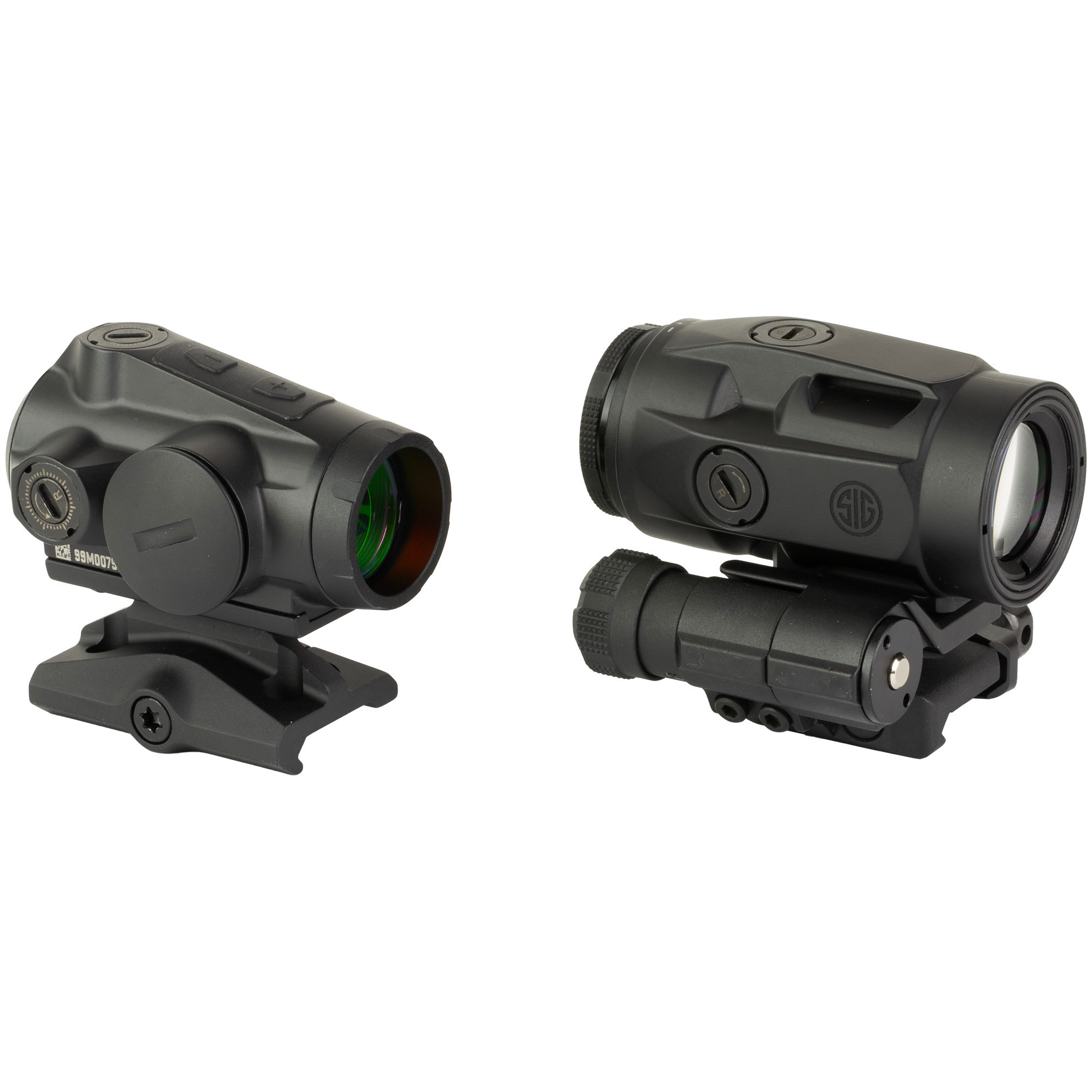 Sig Sauer, Romeo 5 Gen II/Juliet3-Micro Combo Kit, Red Dot Sight w/Juliet3-Micro Magnifier, 1X20mm/3X22mm, 2 MOA Dot, Includes 90 Degree Push-Button Flip-to-Side Magnifier Mount and Low Profile Red Dot Mount, Matte Finish, Black