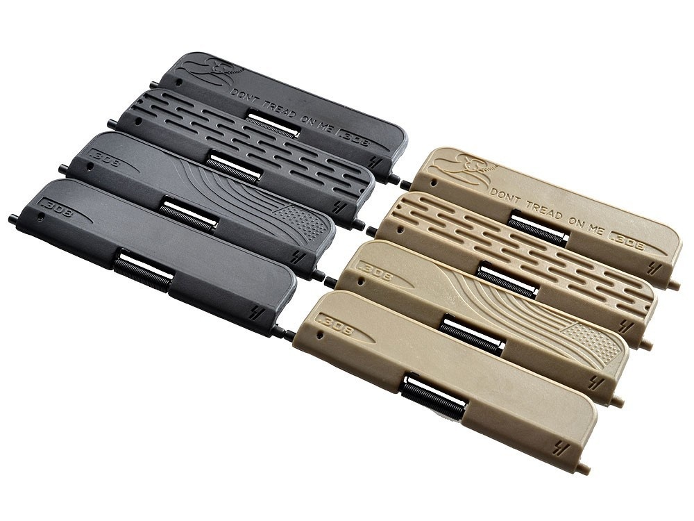 The SI UDC 308 enables users to attach and detach the cover in 5 to 10 seconds with ease (stock dust cover will take more time to remove)! It is constructed of a high-density polymer making it more durable and functional than the traditional dust covers. The Ultimate Dust Cover features an adjustable detent set screw in order to compensate wear on the receiver and increase or decrease opening power (To adjust detent: use small flathead driver and depress the ball detent and adjust as necessary.). Choose multiple designs to customize your AR!