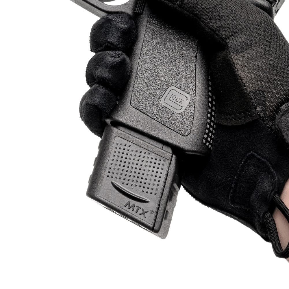 Styling wise, this product looks clean and matches the grip texture of most Glock pistols. The texture is slightly more pronounced to provide a perfect grip. We add the Scallop cut to the side for instinctual blind indexing when doing magazine changes. Unlike other extension kits on the market the MAG19 EXT uses our MTX 19 +5 that uses FIVE unique points of engagement to attach to the magazine body. This magazine will pass over a dozen consecutive fully loaded drop tests at 5′ to concrete. If you know XTech Tactical, you know we overbuild EVERYTHING we make, and true to our flagship MAG line up the MAG19 EXT is no different!